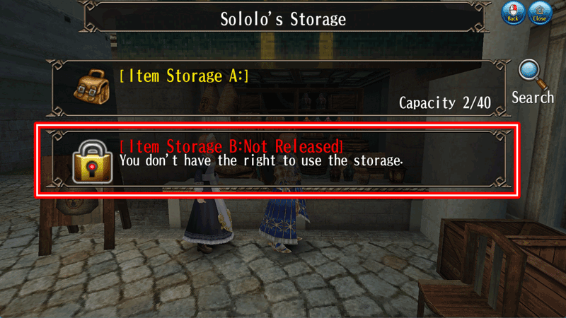 Ex: If rare equipment is dropped when your "Equipment" bag is full, the equipment will be kept in the temporary bag and you can obtain it. Items other than rare equipment will not be kept.